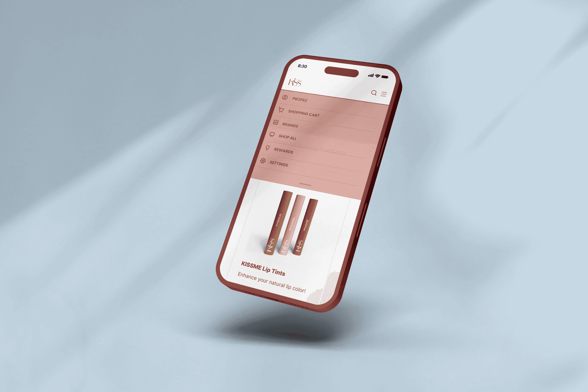 People need a way to explore KISSME Cosmetics through approachable and thoughtful lipstick packaging because they want to feel confident purchasing as first-time shoppers and connect with a brand that feels both trustworthy and visually appealing.
