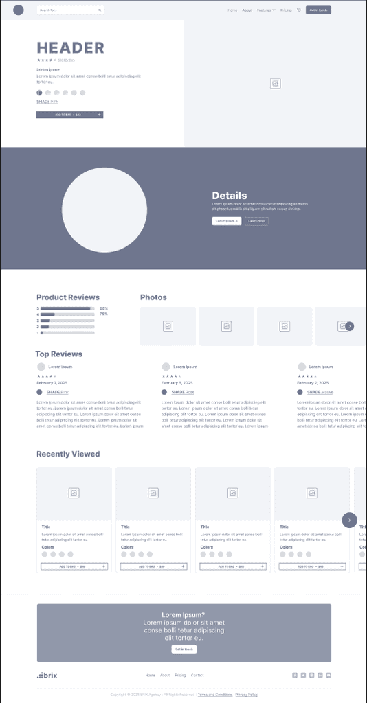 Our high-fidelity mockups show our mid-fidelity wireframes in full color with designs and images. These are our final desktop screens before we do user testing and find any flaws or hiccups in our design.